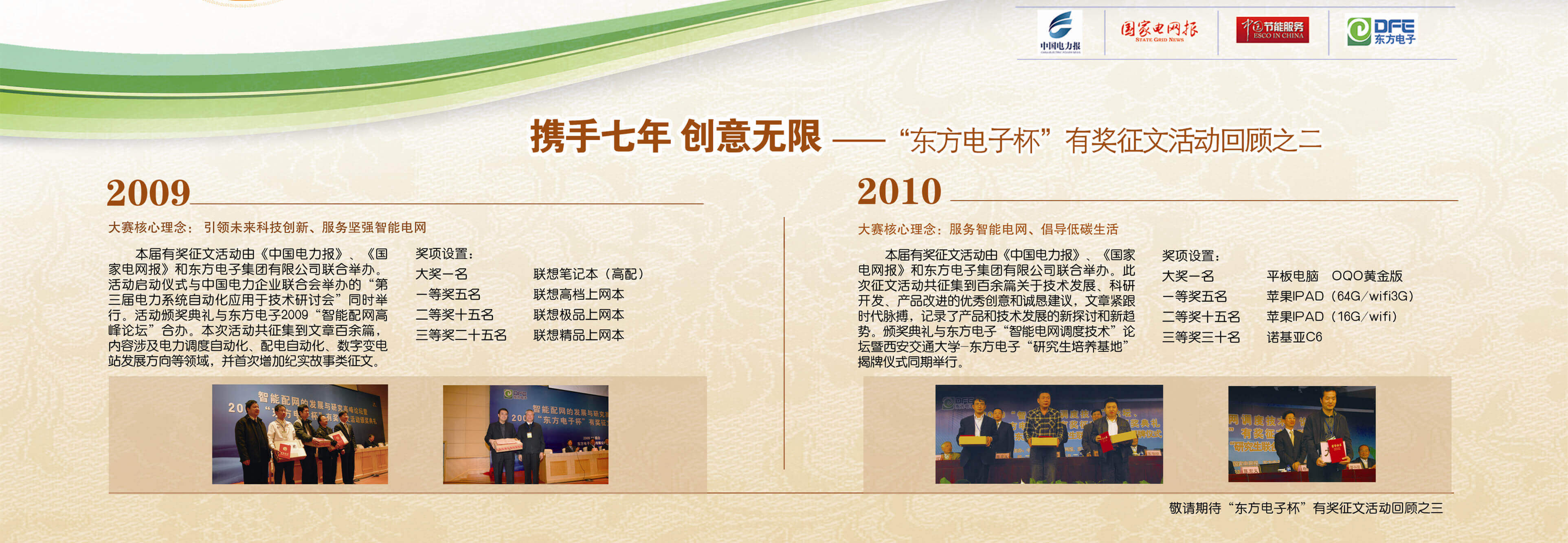 2007年至今,由吉林吉利达科技开发有限公司联合《中国电力报》、《国家电网报》、《中国节能服务》杂志共同举办的“吉林吉利达科技开发有限公司杯”有奖征文活动已成功举办七届,在这个过程中,我们收获了很多客户智慧的结晶、收获了客户参与的热情,成功搭建了与客户交流的平台和沟通的纽带。